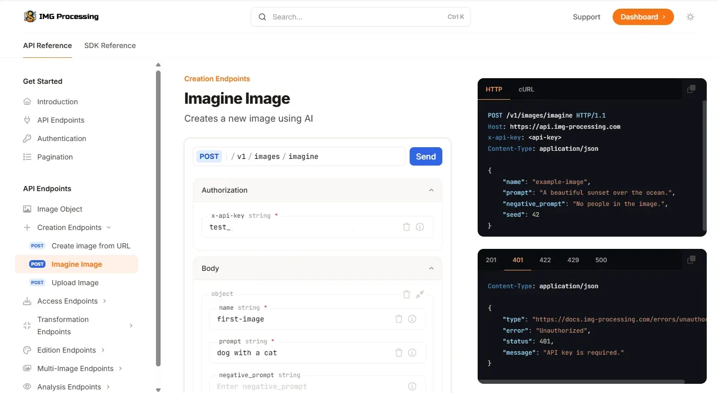IMG Processing API is organized around REST principles. The API has predictable resource-oriented URLs, accepts JSON-encoded request bodies (except for file uploads), returns JSON-encoded responses, and uses standard HTTP response codes and methods.