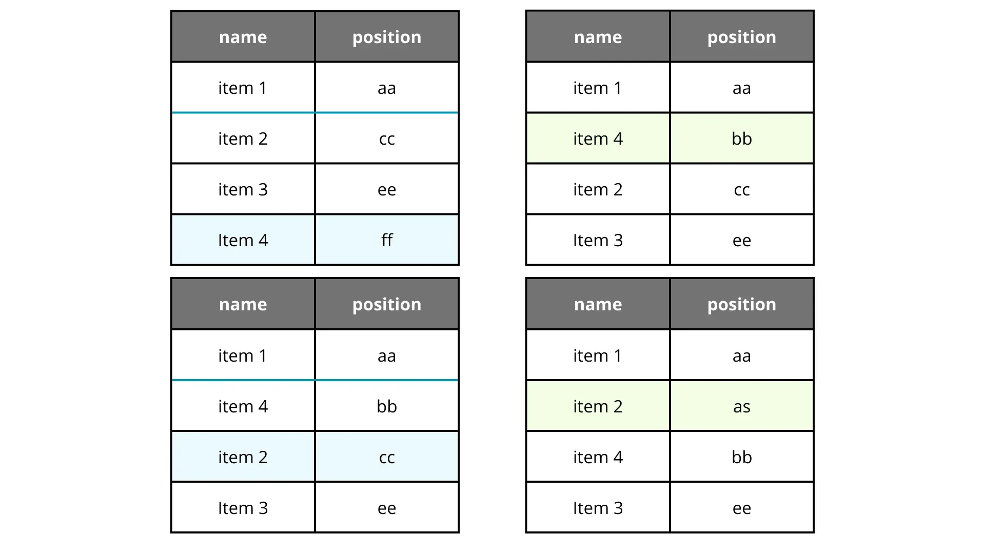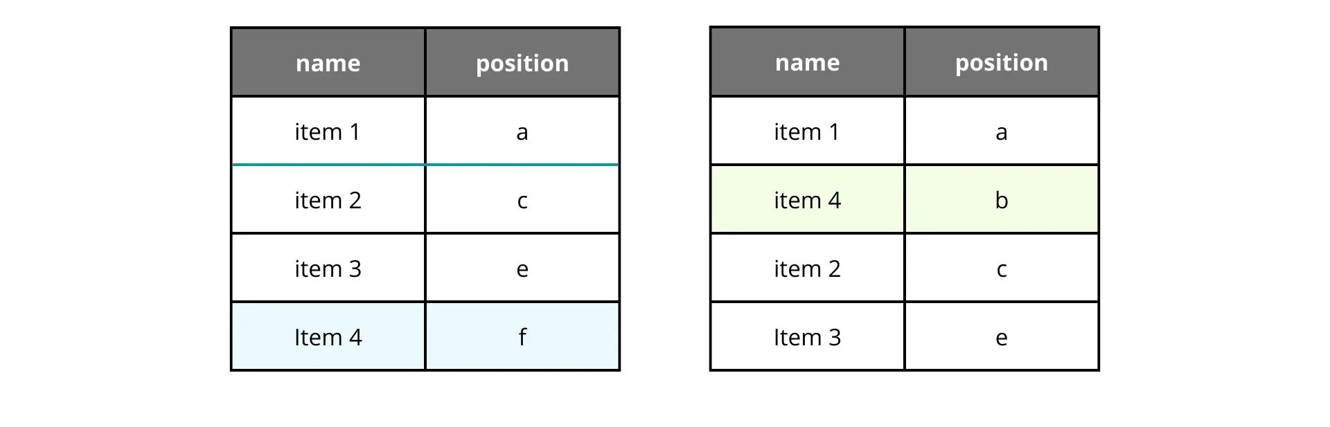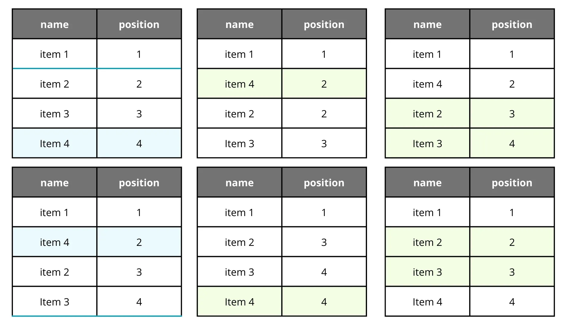 If we want to move an item, we calculate the midpoint between its new neighbors. It works like a charm, until it doesn’t. Let’s say we move item 2 back to the second position repeatedly.