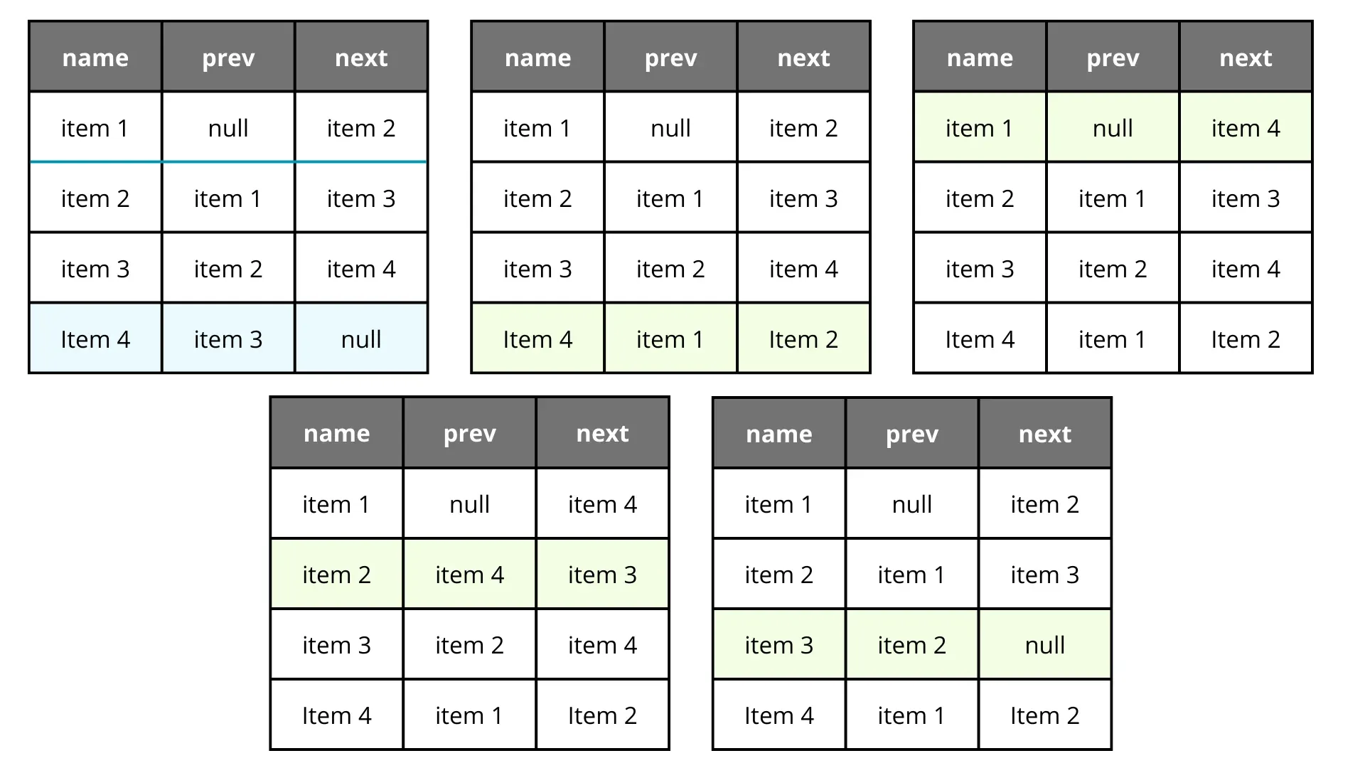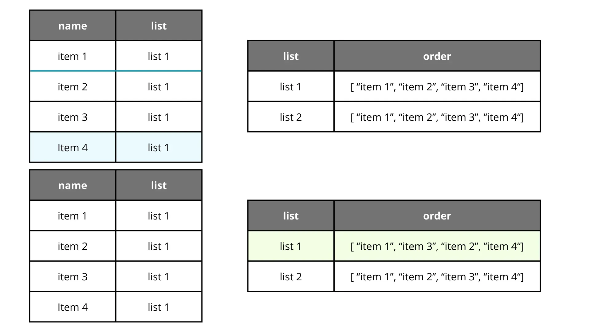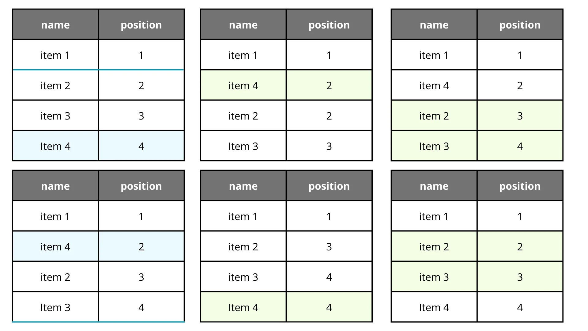 It’s definitely better and more predictable than the array shift approach, but it still touches multiple rows. It’s also harder to query efficiently and can lead to data integrity nightmares in concurrent environments.