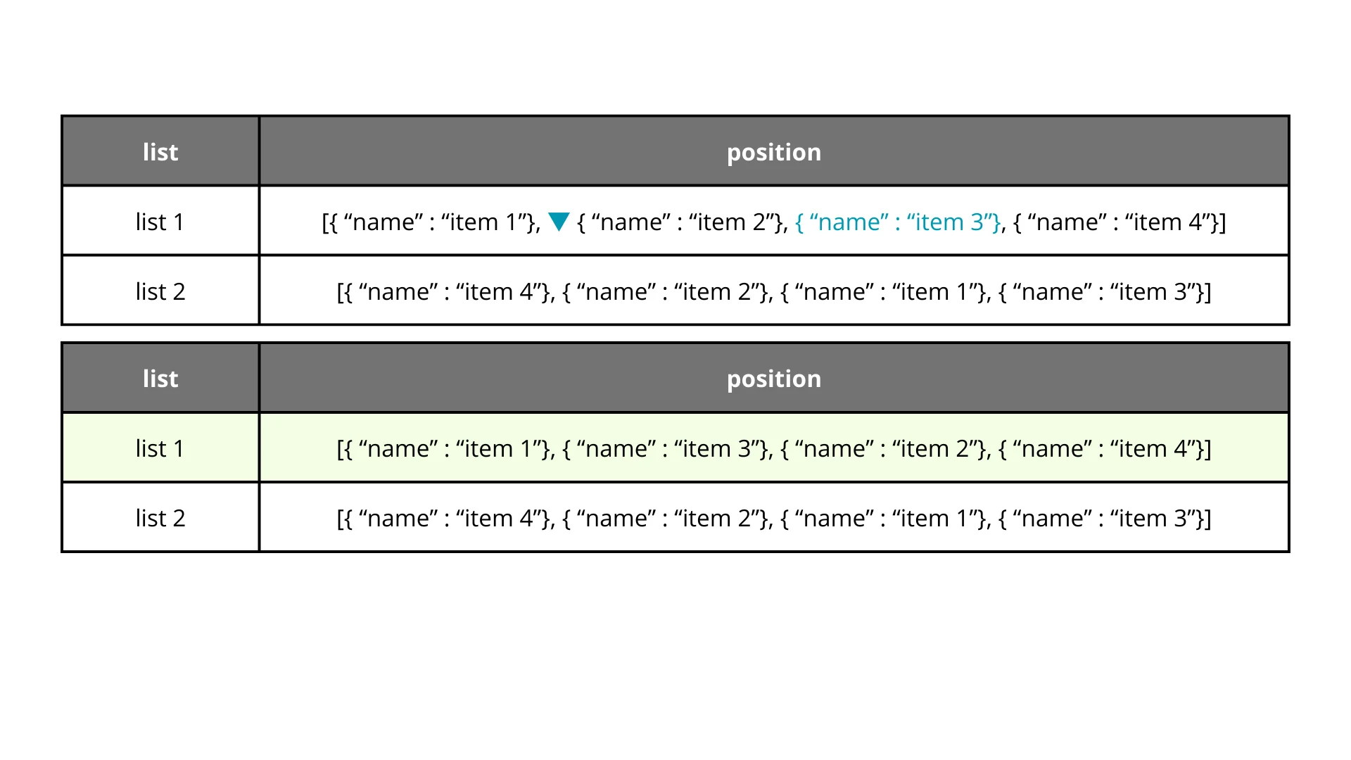 The first solution was somewhat trivial: just add a position field ranging from 0 to N. If you want to move element j to position i, you update all elements in the range [min(i, j), max(i, j)) to reflect their new positions.